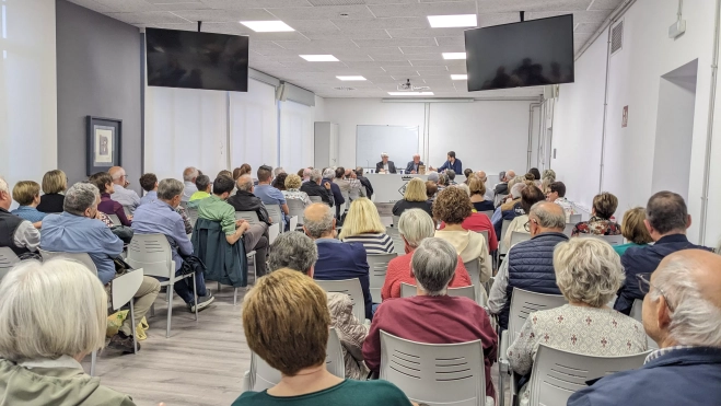 A la presentació també hi va intervenir Josep Fàbregas, professor de la Universitat Rovira i Virgili. Fàbregas va destacar que el llibre conté "tot allò que ha de tenir un volum així", i que "ara Riudoms també té la seva història", com altres localitats properes com Valls, Reus o Tarragona. Va felicitar els riudomencs per un volum que "omple un buit important en el coneixement sobre la vila", i va posar en valor la importància de la història feta des de lo local, per historiadors i centres d'estudis. "La història dels grans fets no seria possible sense les petites històries de cada lloc", va assegurar. A l'acte també hi va intervenir l'alcalde de Riudoms, Ricard Gili, que va qualificar l'obra de "regal al poble de Riudoms".