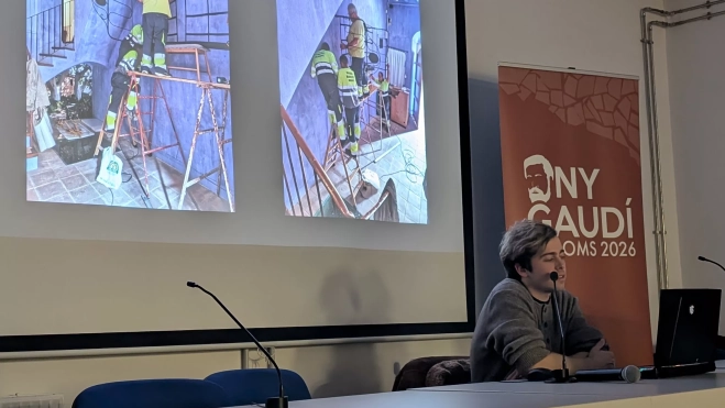 L’any 2002 va obrir portes a Riudoms la Casa Pairal i, des de llavors, s’ha convertit en l’espai de referència per als visitants que volen conèixer el vincle de Gaudí amb el poble. Aquest 2026, i coincidint amb l’Any Gaudí, la casa ha estrenat una nova conceptualització. I d’això va ser precisament del que es va parlar en la primera conferència del Cicle de l’Any Gaudí, organitzat per aquesta revista, L’Om, i per l’Ajuntament de Riudoms. Guillem Molons, restaurador, conservador d’art i guia de la Casa Pairal va presentar la conferència “Mosques i sants; la restauració de la Casa Pairal”.